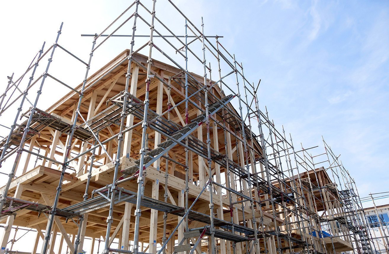 住宅等の新築工事における足場がご必要の際は、経験豊富な弊社にお任せを。よりスムーズな工事が行なえるよう、先行して足場を組ませていただきます。